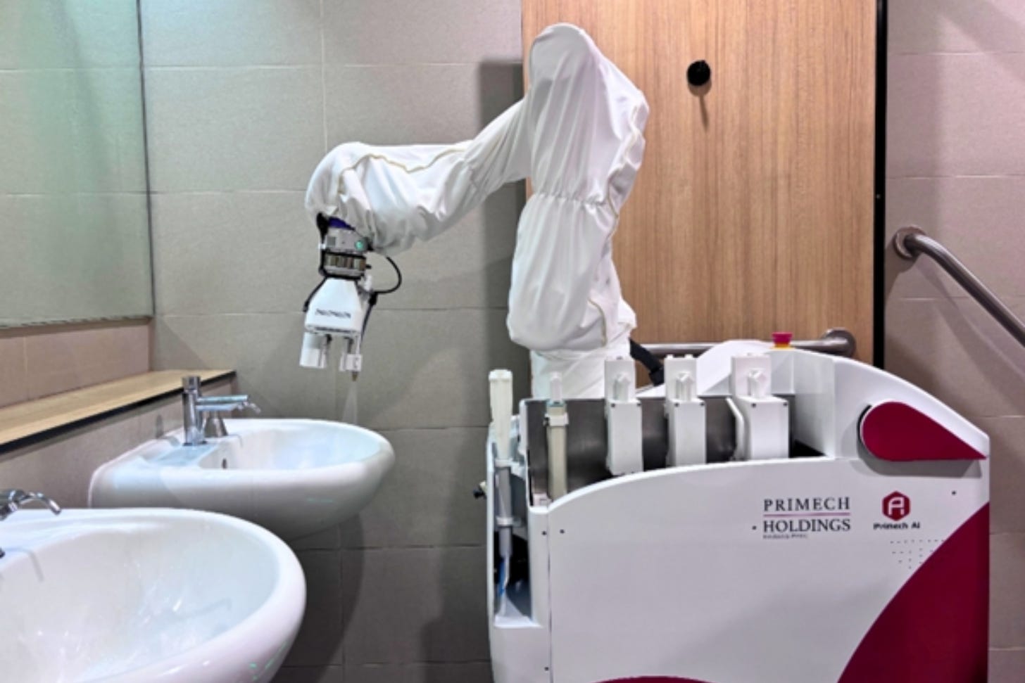 Primech AI’s Hytron robot is built for this exact challenge. It is designed to operate in tight, wet environments like restrooms, where automation is particularly difficult.